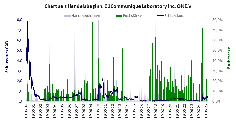 Ein sauberer Dez-24-Push, der vorbei ist. 01Communique Laboratory hat ein sehr schlechtes Gesamtscoring und ist ein Pennystock mit einem riesigen Kursverlust. Das Gesamtvermögen ist karg, harte Vermögenswerte scheinen wenig werthaltig zu sein, der Umsatz ist überschaubar, die Ertragslage extrem verlustreich, das Defizit extrem hoch.