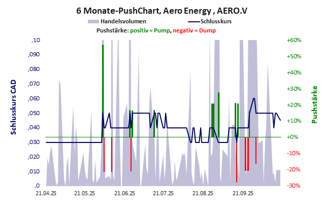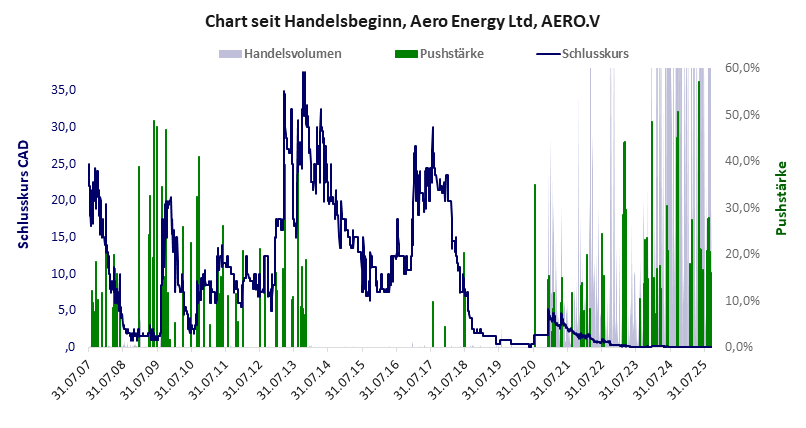 Die Firma hat keine Substanz, der Aktienkurs zeigt Pushindikationen und JS Research (s.o.) pushte die Aktie in haarsträubender Weise. Diese Aktie gehört in den Müll. Aero Energy hat ein inakzeptables Gesamtscoring und ist ein mickriger Pennystock mit praktisch einem Totalverlust. Das Gesamtvermögen ist überschaubar, harte Vermögenswerte scheinen nicht werthaltig zu sein, der Umsatz ist nicht existent, die Ertragslage extrem verlustreich, das Defizit extrem hoch.