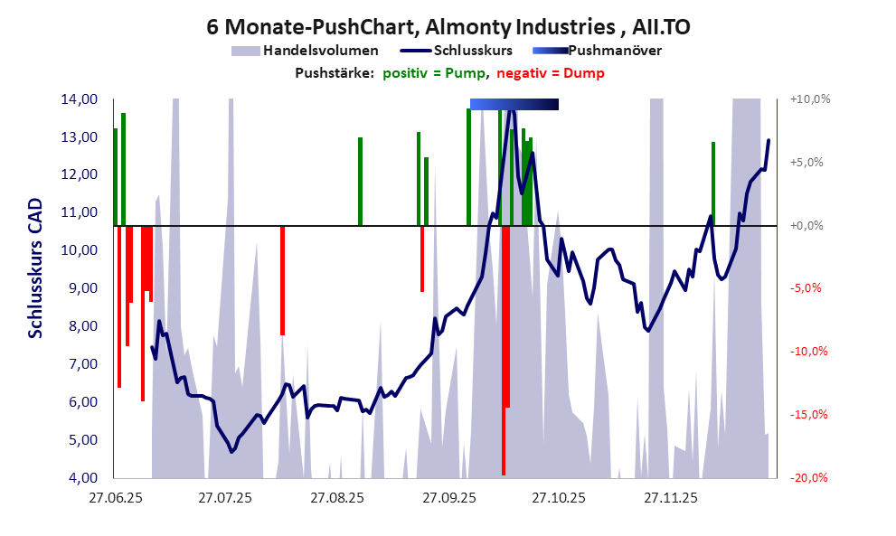 Die Aktie eines Bergbauunternehmens, die in 2025 einen gigantischen Kursanstieg verzeichnete und simplywall dem Unternehmen eine gute Zukunftsaussicht bescheinigt. Die Finanzdaten mahnen jedoch zur Vorsicht: Almonty verdient noch nichts und die Aktie wird von Apaton massiv gepusht. Der Kurs ist geprägt von teils starken Abverkäufen und der Kursanstieg in 2025 ist stark spekulativer Natur. Es darf weiter spekuliert werden. Entweder erreicht der Abbau tatsächlich wirtschaftlichen Erfolg oder es folgt der Kurseinbruch wie in so vielen anderen Fällen.