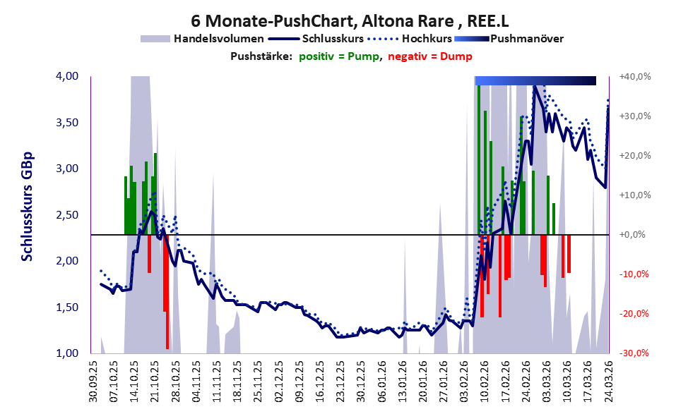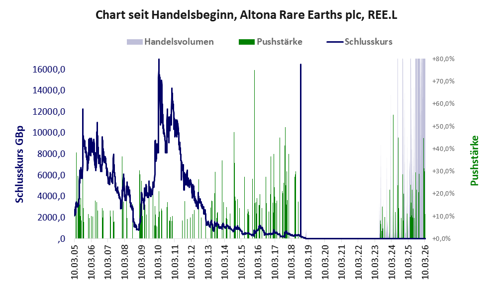 Über diese Aktie berichtet DGWA. Das tägliche Handelsvolumen betrug an obiger Börse während der letzten drei Monate bis Berichtsdatum: 16.056.720 Stück, das sind 4,2% der ausgegebenen Aktien. In Aktien der Klasse V darf man grundsätzlich nicht investieren. Es gibt keinen ordentlichen Geschäftsbetrieb. Die Aktie hat nur den Zweck, mit Pushmanövern oder Algotrading an der Börse Kasse zu machen.