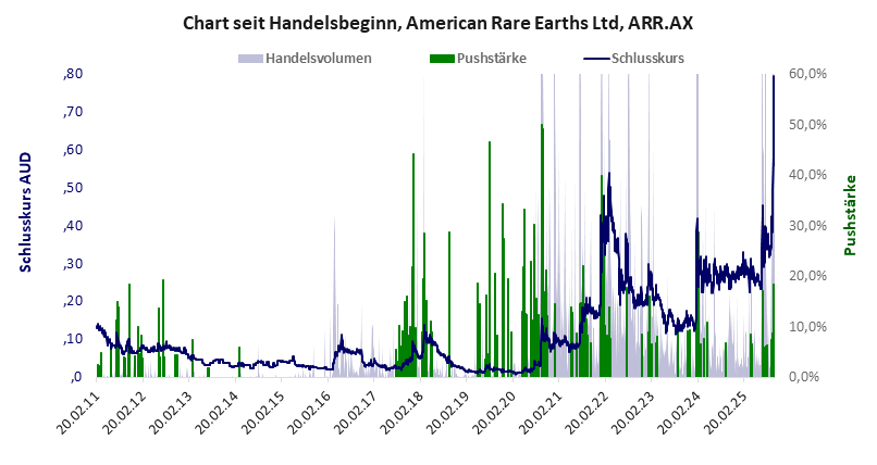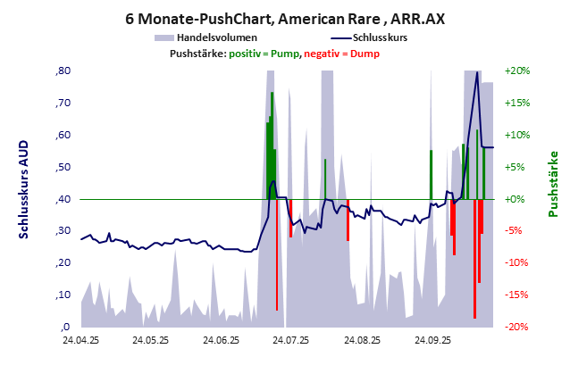 Der Aktienkurs von einem kleinen Mittelständler, der fast ausschließlich aus Cash besteht, steigt pushgetrieben. Das Unternehmen hat keine Substanz. American Rare hat ein unbefriedigendes Gesamtscoring und ist ein mickriger Pennystock mit praktisch einem Totalverlust. Das Gesamtvermögen ist überschaubar, harte Vermögenswerte scheinen sehr werthaltig zu sein, der Umsatz ist nicht existent, die Ertragslage extrem verlustreich, das Defizit ziemlich hoch.