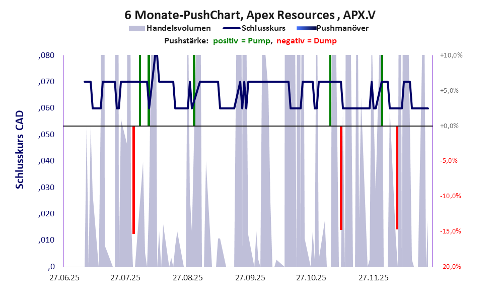Bei dieser Aktie liegt das „Inkassomodell“ vor, bei dem der Aktienkurs zu Beginn der Geschichte sein Allzeithoch hat. Die Akteure verkaufen schon zu Beginn nach und nach ihre billigst erworbenen Aktien, so dass der Kurs in verhältnismäßig kurzer Zeit abstürzt. Danach dümpelt der Aktienkurs in den meistn Fällen nahe null dahin und die Aktie dient nur noch kleineren, dennoch gewinnbringenden Pushmanövern und in vielen Fällen dem Algotrading. Dem ersten Einbruch nachfolgende größere Pushmanöver sind aber nicht ausgeschlossen. Bei dieser Aktie vollzogen die Akteure mindestens einen Pump & Dump und leerten damit ganz gezielt die Taschen der Anleger. Obwohl das Vorgehen rechtswidrig ist, erfolgt kaum je eine Strafverfolgung.