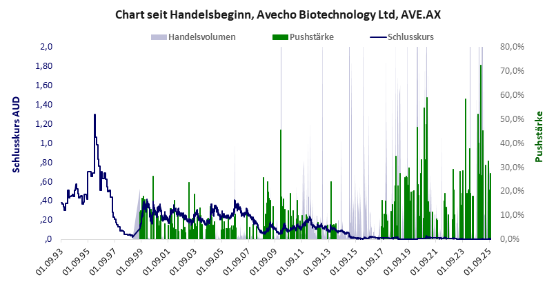 Avecho Biotechnology hat ein inakzeptables Gesamtscoring und ist ein mickriger Pennystock mit praktisch einem Totalverlust. Das Gesamtvermögen ist karg, harte Vermögenswerte scheinen nicht werthaltig zu sein, der Umsatz ist überschaubar, die Ertragslage extrem verlustreich, das Defizit extrem hoch.