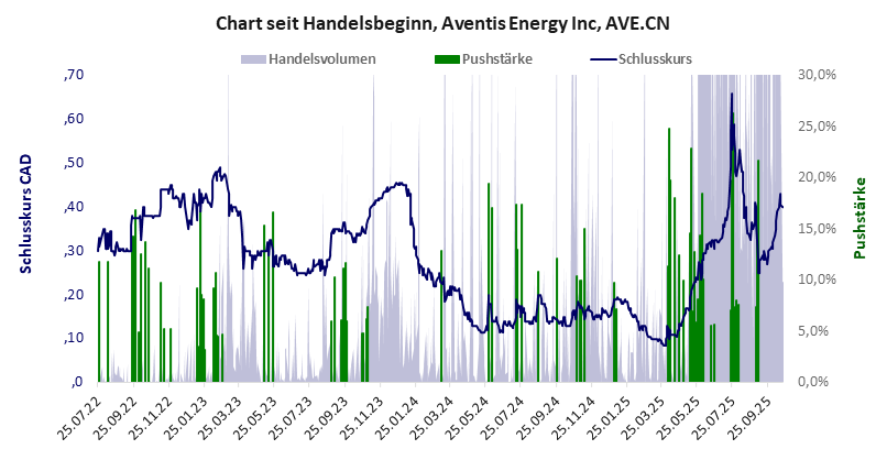 Aventis Energy hat ein schwaches Gesamtscoring und ist ein kleiner Pennystock mit Kursgewinn. Das Gesamtvermögen ist karg, harte Vermögenswerte scheinen nicht werthaltig zu sein, der Umsatz ist nicht existent, die Ertragslage extrem verlustreich, das Defizit hoch.