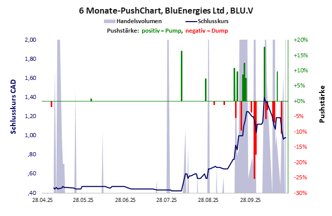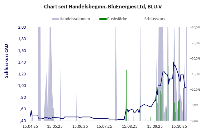 Wieder eine Müllaktie mehr an der Frankfurter WERTpapierbörse. BluEnergies Ltd hat ein kritisches Gesamtscoring und ist ein mickriger Pennystock mit Kursgewinn. Das Gesamtvermögen ist karg, harte Vermögenswerte scheinen nicht vorhanden zu sein, der Umsatz ist nicht existent, die Ertragslage extrem verlustreich, das Defizit erträglich.