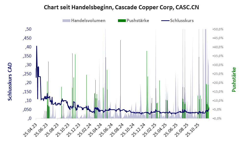 Bei dieser Aktie liegt das „Inkassomodell“ vor, bei dem der Aktienkurs zu Beginn der Geschichte sein Allzeithoch hat. Die Akteure verkaufen schon zu Beginn nach und nach ihre billigst erworbenen Aktien, so dass der Kurs in verhältnismäßig kurzer Zeit abstürzt. Danach dümpelt der Aktienkurs in den meistn Fällen nahe null dahin und die Aktie dient nur noch kleineren, dennoch gewinnbringenden Pushmanövern und in vielen Fällen dem Algotrading. Dem ersten Einbruch nachfolgende größere Pushmanöver sind aber nicht ausgeschlossen.