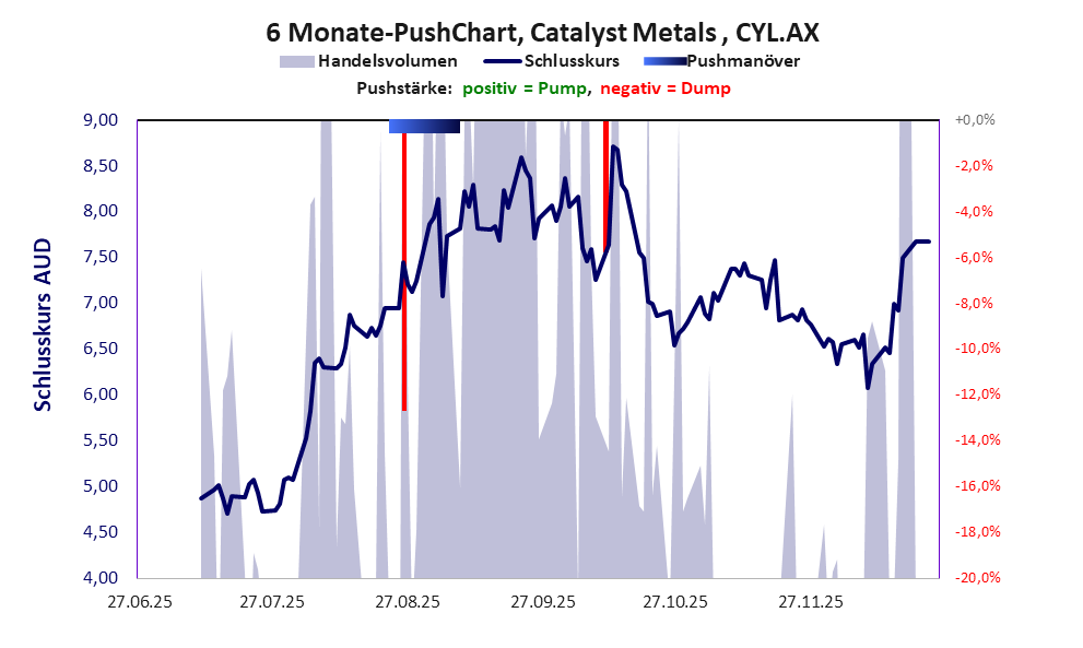 Was an dieser Aktie stört, sind die zahlreichen Pushes mit nicht einmal sehr hohen Pushstärken und der extreme Kursanstieg seit Mai 2024, ohne dass es dafür evidente und substanzielle Daten gibt. Das könnte auch den Kursverfall im Juni 2025 erklären. Bei dieser Aktie vollzogen die Akteure mindestens einen Pump & Dump und leerten damit ganz gezielt die Taschen der Anleger. Obwohl das Vorgehen rechtswidrig ist, erfolgt kaum je eine Strafverfolgung.