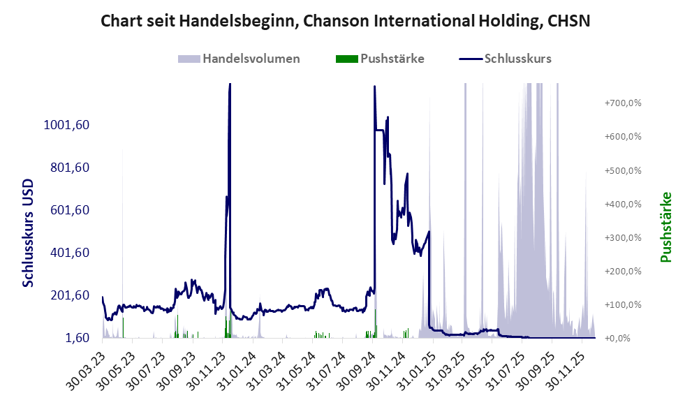 Chanson zählt zu einer Gruppe chinesischer Firmen deren Aktien in den USA oder auf den Antillen beheimatet sind und die auf der Warnliste der BaFin stehen. Der Aktienkurs dieser Firmen zeigt schlagartig durchgeführte Dumps, mit denen die Anleger (oft in Chatgruppen organisiert) um ihr Geld betrogen wurden. Die Geschichte, wie abgezockt wird, steht unter „Am Handy abgezockt„. Bei dieser Aktie vollzogen die Akteure mindestens einen Pump & Dump und leerten damit ganz gezielt die Taschen der Anleger. Obwohl das Vorgehen rechtswidrig ist, erfolgt kaum je eine Strafverfolgung.