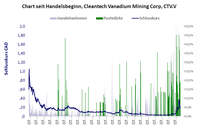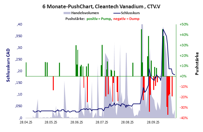 Cleantech wurde am 13.05.2025 im Zweitlisting an der FWB einbezogen. Die Bewertung ist so schlecht, dass man solchen Börsengang kaum verstehen kann. Sicher ist nur, es handelt sich um eine Pusheraktie, die man links liegen lassen muss. Cleantech Vanadium hat ein schlechtes Gesamtscoring und ist ein mickriger Pennystock mit einem riesigen Kursverlust. Das Gesamtvermögen ist überschaubar, harte Vermögenswerte scheinen nicht vorhanden zu sein, der Umsatz ist nicht existent, die Ertragslage extrem verlustreich, das Defizit hoch.