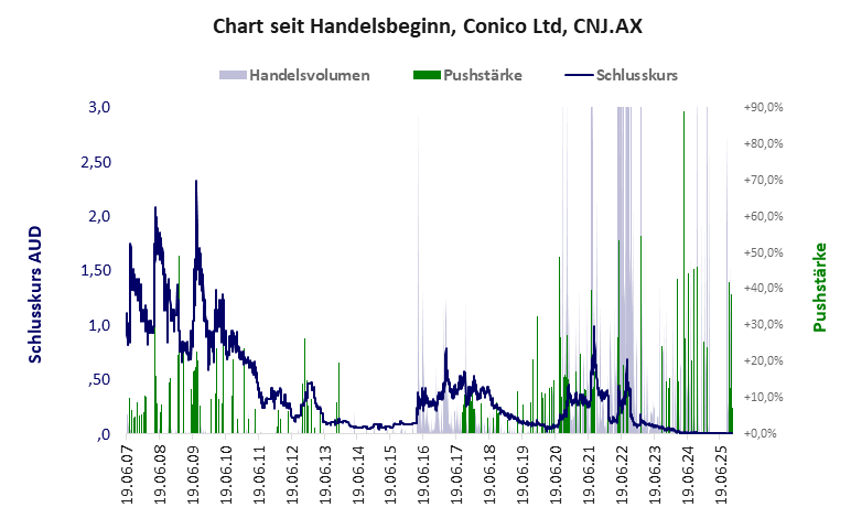 Conico Ltd hat ein unbefriedigendes Gesamtscoring und ist ein mickriger Pennystock mit praktisch einem Totalverlust. Das Gesamtvermögen ist karg, die Vermögenswerte scheinen nicht werthaltig zu sein, der Umsatz ist nicht existent, die Ertragslage extrem verlustreich, die Geldverbrennung extrem hoch.