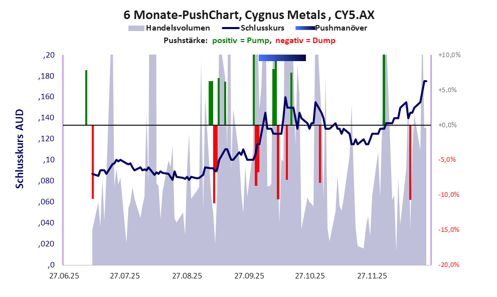 Anfang 2025 kaufte Cygnus alle Anteile der Dorè Copper Mining „zur Bildung einer bedeutenden Bergbaufirma„. Es wird jedoch aus zwei kleinen Mittelständlern ohne Produktion keine erfolgreiche Firma. Dass Dore Copper eine Auffrischung brauchte, belegt der Kursverlauf und so lag es nahe, dass die Akteure eine Zusammenlegung vornahmen. Nach „üblichem Gebrauch“ darf man annehmen, dass ein Pushmanöver folgen könnte.