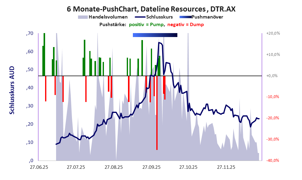 Und wieder ein Müllkübel an der FWB. Bei dieser Aktie liegt das „Inkassomodell“ vor, bei dem der Aktienkurs zu Beginn der Geschichte sein Allzeithoch hat. Die Akteure verkaufen schon zu Beginn nach und nach ihre billigst erworbenen Aktien, so dass der Kurs in verhältnismäßig kurzer Zeit abstürzt. Danach dümpelt der Aktienkurs in den meistn Fällen nahe null dahin und die Aktie dient nur noch kleineren, dennoch gewinnbringenden Pushmanövern und in vielen Fällen dem Algotrading. Dem ersten Einbruch nachfolgende größere Pushmanöver sind aber nicht ausgeschlossen.