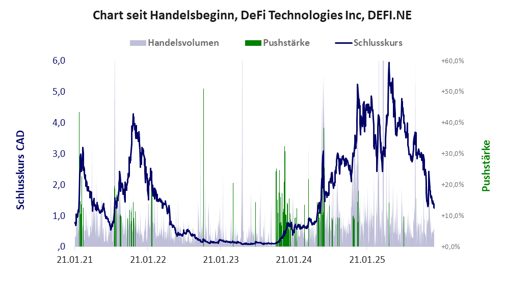 Der Aktienkurs des unprofitablen Unternehmens ist von Pushmanövern geprägt. Das größte der Jahre 2024 und 2025 ist vorbei und der Kurs verfällt.