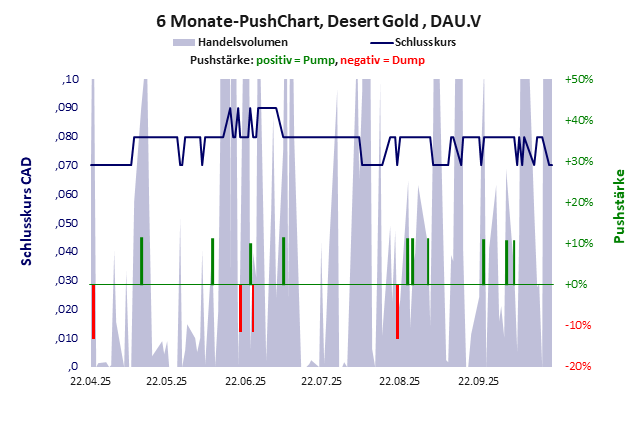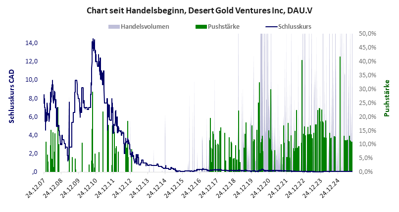 Unglaublich die Empfehlung für diese Müllaktie! Nichts kann übel genug sein, um nicht zu werben, wenn genug bezahlt wird Desert Gold hat ein inakzeptables Gesamtscoring und ist ein mickriger Pennystock mit praktisch einem Totalverlust. Das Gesamtvermögen ist karg, harte Vermögenswerte scheinen nicht vorhanden zu sein, der Umsatz ist nicht existent, die Ertragslage extrem verlustreich, das Defizit extrem hoch.