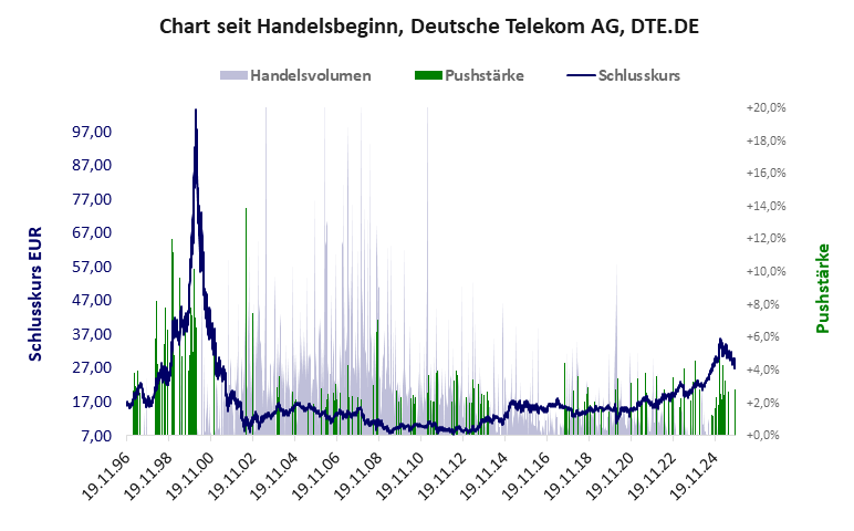 Auch eine blue chip Aktie kann wie jede andere Aktie gepusht werden. Die Frage ist nicht ob, sondern wer pusht und wie ist die Aktie insgesamt zu bewerten. Die der Deutschen Telekomerstklassig trotz gepushten Kurses im Jahr 1999. Die Aktie gehört zum Top-Börsensegment, ist ein Spitzenwert und jenseits aller Pushertätigkeit durch Akteure. Bei einem Aktienhype kann es dennoch zu hohen Pushstärken kommen.