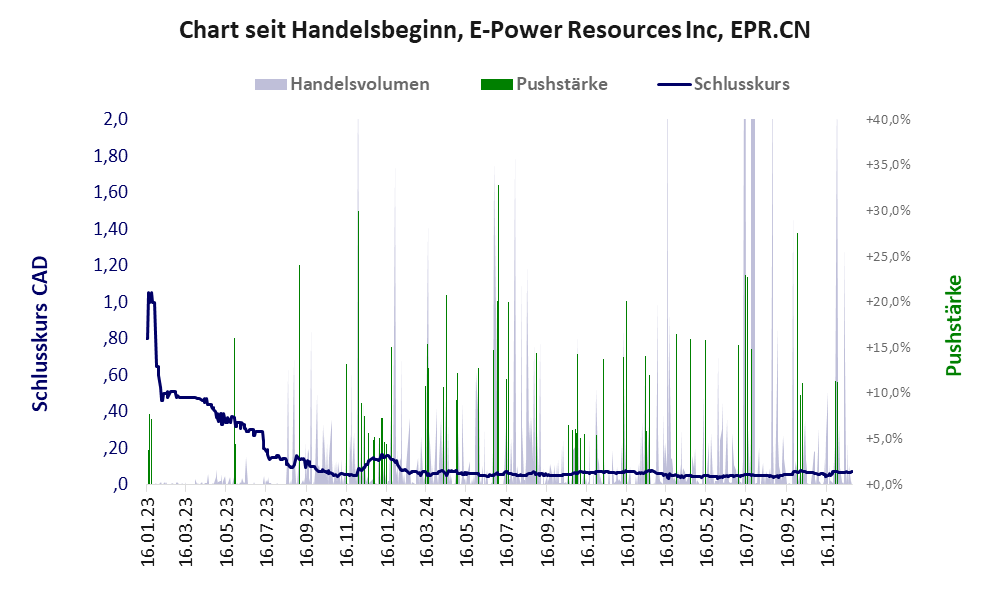 E-Power Resources ist ein Winzling mit einer Muell-Aktie der Klasse V und den Eckdaten: