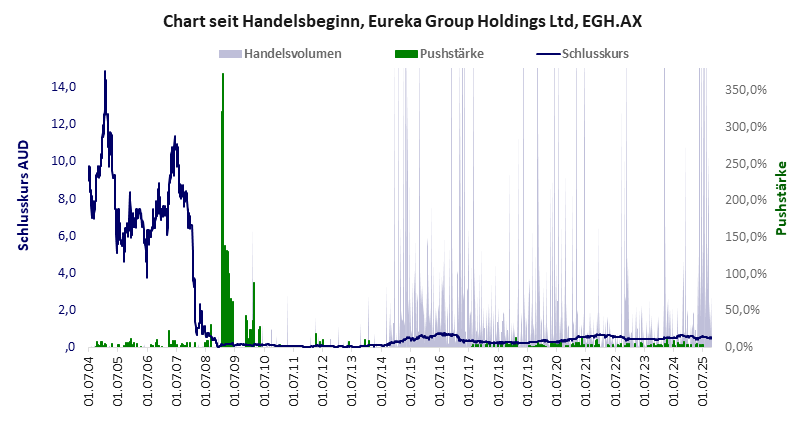 Eureka Group hat ein schwaches Gesamtscoring und ist ein Pennystock mit einem riesigen Kursverlust. Das Gesamtvermögen ist groß, harte Vermögenswerte scheinen nicht vorhanden zu sein, der Umsatz ist beträchtlich, die Ertragslage sehr gut, das Defizit nicht vorhanden.