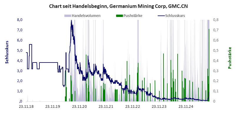 Germanium Mining ist ein sehr schlechter und mickriger Pennystock mit praktisch einem Totalverlust. Das Gesamtvermögen ist mickrig, harte Vermögenswerte sind sehr werthaltig, der Umsatz fehlt, die Ertragslage extrem verlustreich, das Defizit extrem hoch.