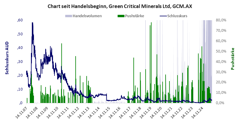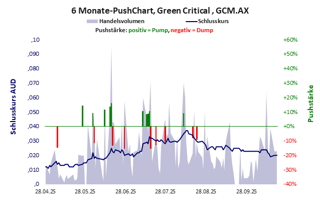 ein substanzloser Pusher mit verfallenem Kurs. Green Critical hat ein schlechtes Gesamtscoring und ist ein mickriger Pennystock mit praktisch einem Totalverlust. Das Gesamtvermögen ist überschaubar, harte Vermögenswerte scheinen nicht werthaltig zu sein, der Umsatz ist nicht existent, die Ertragslage extrem verlustreich, das Defizit hoch.
