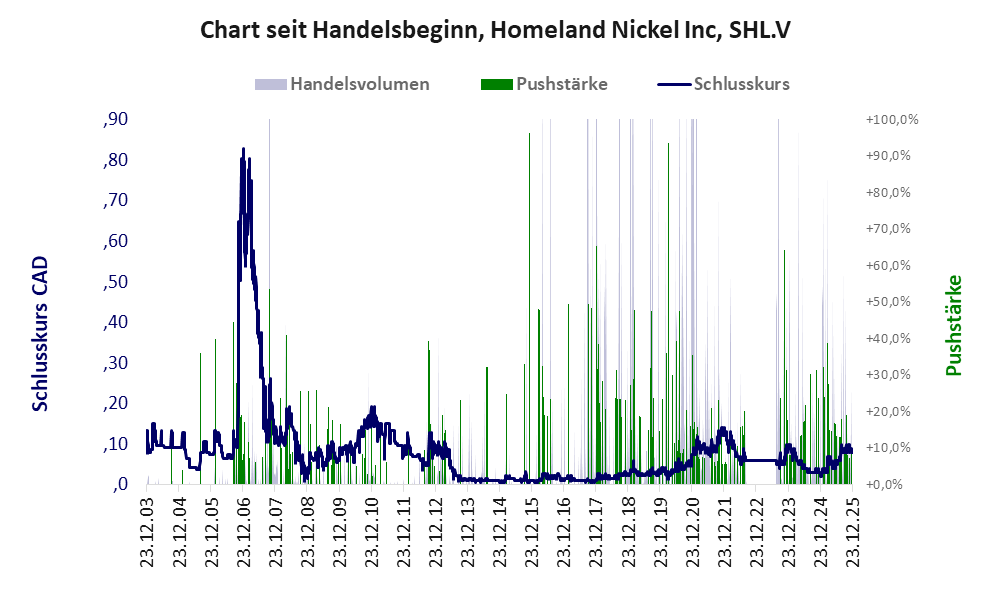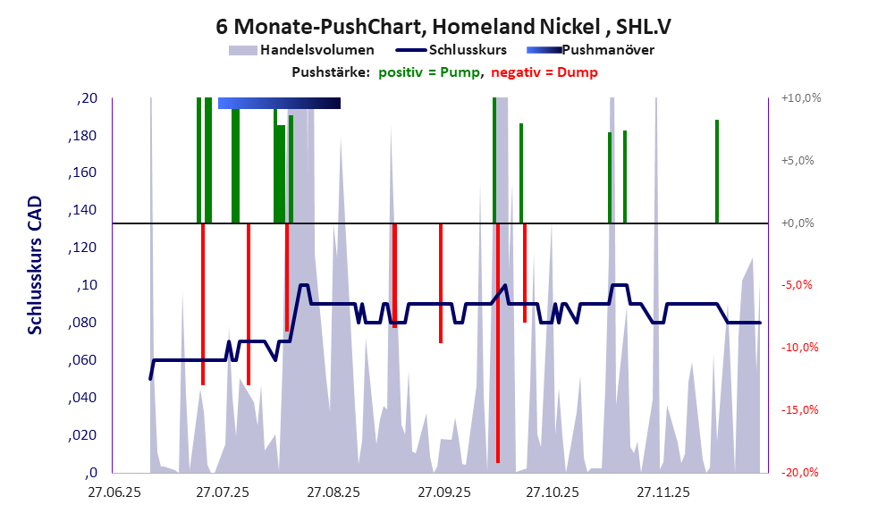 Homeland Nickel ist ein MinikmU mit einer Pusher-Aktie der Klasse III und den Eckdaten: