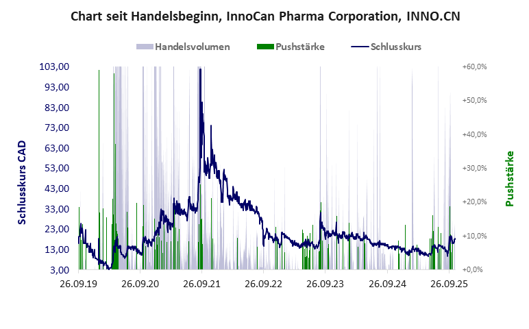 InnoCan Pharma hat ein schwaches Gesamtscoring und ist eine günstige Aktie mit Kursgewinn. Das Gesamtvermögen ist überschaubar, die Vermögenswerte scheinen nicht werthaltig zu sein, der Umsatz ist beträchtlich, die Ertragslage schlecht, die Geldverbrennung extrem hoch.
