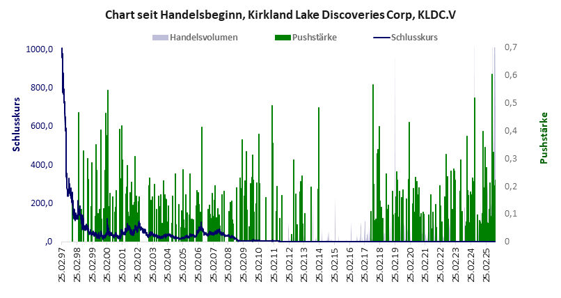 Kirkland Lake ist ein unbefriedigender und mickriger Pennystock mit praktisch einem Totalverlust. Das Gesamtvermögen ist überschaubar, harte Vermögenswerte sind sehr werthaltig, der Umsatz fehlt, die Ertragslage extrem verlustreich, das Defizit extrem hoch.