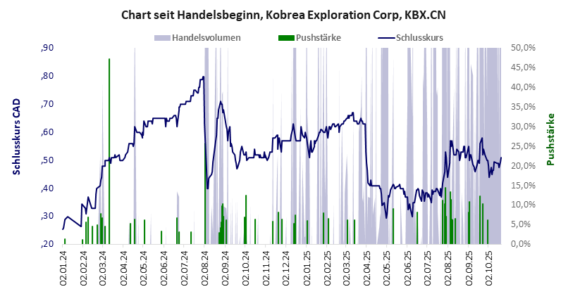 ein Nichts! Es ist unvorstellbar, dass es dafür einen Aktienkurs gibt. Kobrea Exploration hat ein schwaches Gesamtscoring und ist ein kleiner Pennystock mit Kursgewinn. Das Gesamtvermögen ist überschaubar, harte Vermögenswerte scheinen nicht werthaltig zu sein, der Umsatz ist nicht existent, die Ertragslage extrem verlustreich, das Defizit erträglich.