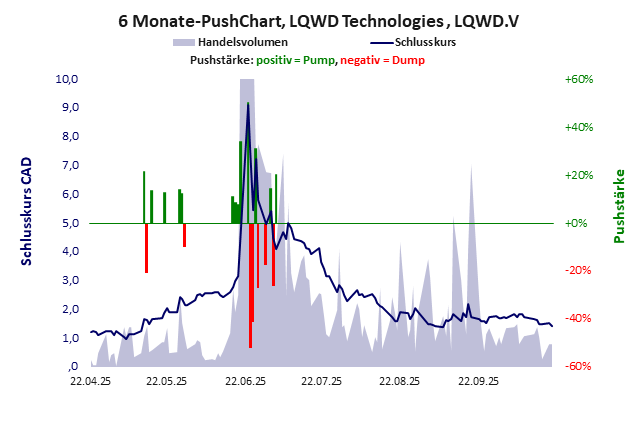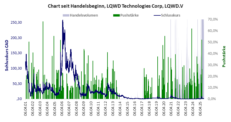 LQWD Technologies hat ein unbefriedigendes Gesamtscoring und ist eine billige Aktie mit praktisch einem Totalverlust. Das Gesamtvermögen ist überschaubar, harte Vermögenswerte scheinen nicht vorhanden zu sein, der Umsatz ist mickrig, die Ertragslage extrem verlustreich, das Defizit extrem hoch.