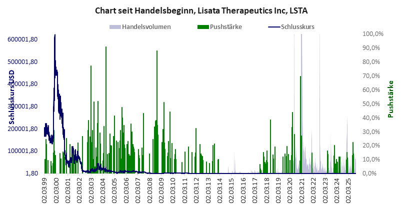Seit 25 Jahren erfolgloser Geldverbrenner von über einer halben Milliarde USD. Um den Kursverfall darstellen zu können, reicht nur der logarithmische Maßstab! Es ist ein Rätsel, dass Analysten nunmehr ein Ziel von 18 USD ausgeben, weil im 26. Jahr der Durchbruch gelingen soll. Man kann dem Unternehmen nur eine großartige Fähigkeit bescheinigendie Anleger und Investoren immer wieder zum Geldverbrennen zu bringen. Lisata Therapeutics hat ein miserables Gesamtscoring und ist eine billige Aktie mit praktisch einem Totalverlust. Das Gesamtvermögen ist überschaubar, harte Vermögenswerte scheinen nicht vorhanden zu sein, der Umsatz ist überschaubar, die Ertragslage extrem verlustreich, das Defizit extrem hoch.