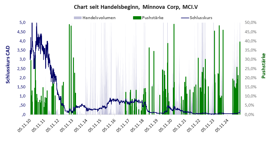 Bei der Aktie handelt es sich um einen kleinen Pennystock mit einem riesigen Kursverlust. Das Gesamtvermögen ist mickrig, die Vermögenswerte sind sehr werthaltig, der Umsatz fehlt, die Ertragslage extrem verlustreich, das Defizit extrem hoch.