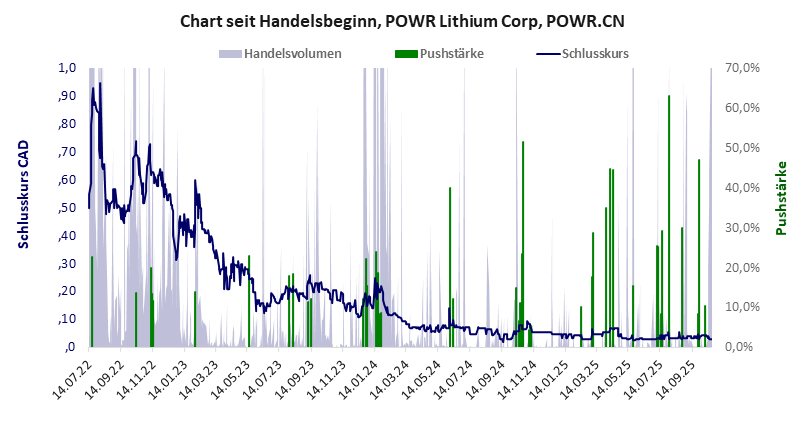 eine völlig wertlose Firma, die nur als Pusheraktie diente und offenkundig vom Typ " POWR Lithium hat ein grottenschlechtes Gesamtscoring und ist ein mickriger Pennystock mit einem riesigen Kursverlust. Das Gesamtvermögen ist nahezu null, harte Vermögenswerte scheinen nicht vorhanden zu sein, der Umsatz ist nicht existent, die Ertragslage extrem verlustreich, das Defizit extrem hoch.