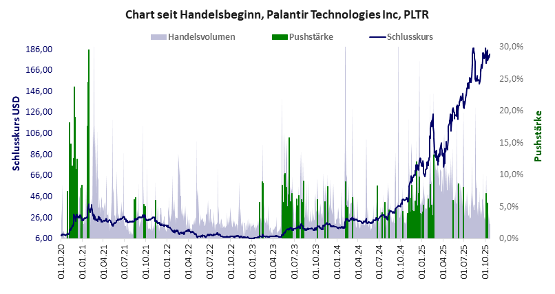 ein erfolgreiches Unternehmen, keine Pusheraktie und dennoch mit gepushtem Kurs und Rücksetzer. Palantir Technologies hat ein mäßiges Gesamtscoring und ist eine teure Aktie mit Kursgewinn. Das Gesamtvermögen ist sehr groß, harte Vermögenswerte scheinen nicht werthaltig zu sein, der Umsatz ist sehr groß, die Ertragslage gut, das Defizit ziemlich hoch.