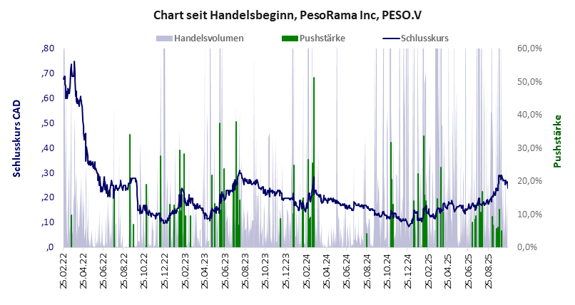 PesoRama Inc hat ein kritisches Gesamtscoring und ist ein kleiner Pennystock mit einem riesigen Kursverlust. Das Gesamtvermögen ist überschaubar, harte Vermögenswerte scheinen noch werthaltig zu sein, der Umsatz ist beträchtlich, die Ertragslage verlustreich, das Defizit sehr hoch.