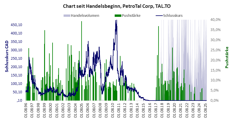 PetroTal Corp hat ein schwaches Gesamtscoring und ist ein Pennystock mit praktisch einem Totalverlust. Das Gesamtvermögen ist sehr groß, harte Vermögenswerte scheinen sehr werthaltig zu sein, der Umsatz ist sehr groß, die Ertragslage gut, das Defizit nicht vorhanden.