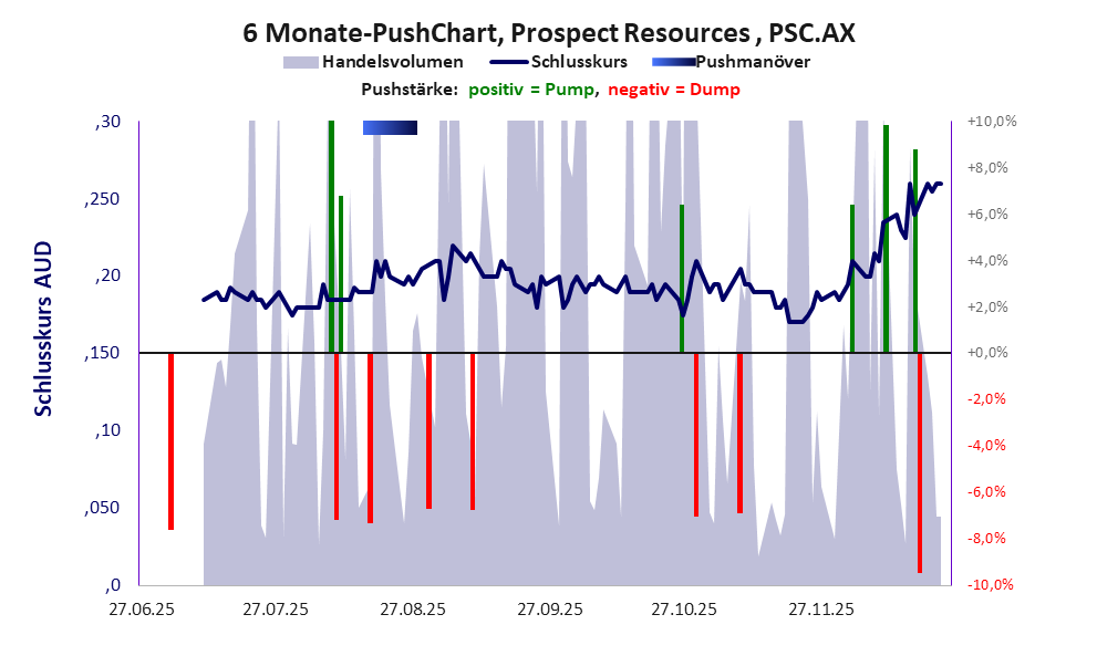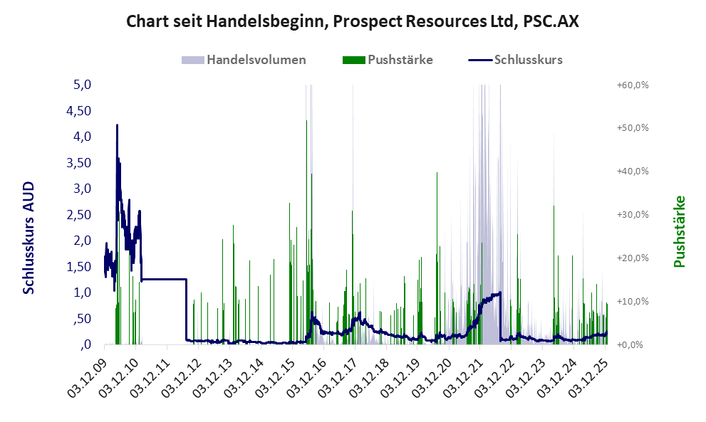 Es ist ein kleiner, erfolgloser Mittelständler, der dann und wann den Kurs pusht, wie in jüngerer Zeit im März 2025. Bei dieser Aktie liegt das „Inkassomodell“ vor, bei dem der Aktienkurs zu Beginn der Geschichte sein Allzeithoch hat. Die Akteure verkaufen schon zu Beginn nach und nach ihre billigst erworbenen Aktien, so dass der Kurs in verhältnismäßig kurzer Zeit abstürzt. Danach dümpelt der Aktienkurs in den meistn Fällen nahe null dahin und die Aktie dient nur noch kleineren, dennoch gewinnbringenden Pushmanövern und in vielen Fällen dem Algotrading. Dem ersten Einbruch nachfolgende größere Pushmanöver sind aber nicht ausgeschlossen.