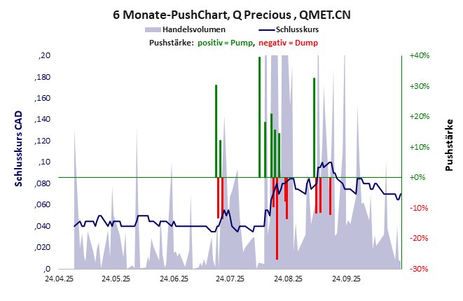 Q Precious hat ein inakzeptables Gesamtscoring und ist ein mickriger Pennystock mit praktisch einem Totalverlust. Das Gesamtvermögen ist karg, harte Vermögenswerte scheinen nicht werthaltig zu sein, der Umsatz ist nicht existent, die Ertragslage extrem verlustreich, das Defizit extrem hoch.
