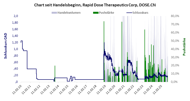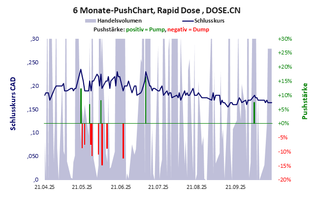Eine Firma mit nichts als einem gepushten Kurs. Rapid Dose hat ein schlechtes Gesamtscoring und ist ein mickriger Pennystock mit einem riesigen Kursverlust. Das Gesamtvermögen ist karg, harte Vermögenswerte scheinen werthaltig zu sein, der Umsatz ist überschaubar, die Ertragslage extrem verlustreich, das Defizit extrem hoch.