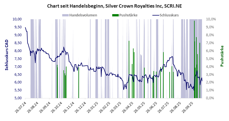 Silver Crown hat ein akzeptables Gesamtscoring und ist eine günstige Aktie mit einem starken Kursverlust. Das Gesamtvermögen ist überschaubar, harte Vermögenswerte scheinen sehr werthaltig zu sein, der Umsatz ist überschaubar, die Ertragslage extrem verlustreich, das Defizit erträglich.