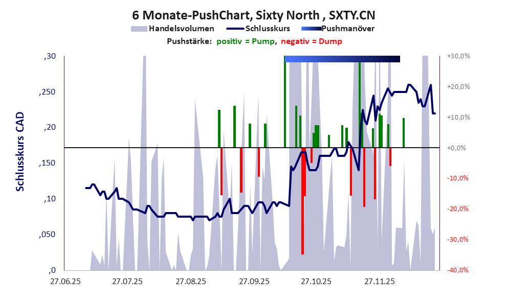 Bei dieser Aktie liegt das „Inkassomodell“ vor, bei dem der Aktienkurs zu Beginn der Geschichte sein Allzeithoch hat. Die Akteure verkaufen schon zu Beginn nach und nach ihre billigst erworbenen Aktien, so dass der Kurs in verhältnismäßig kurzer Zeit abstürzt. Danach dümpelt der Aktienkurs in den meistn Fällen nahe null dahin und die Aktie dient nur noch kleineren, dennoch gewinnbringenden Pushmanövern und in vielen Fällen dem Algotrading. Dem ersten Einbruch nachfolgende größere Pushmanöver sind aber nicht ausgeschlossen.