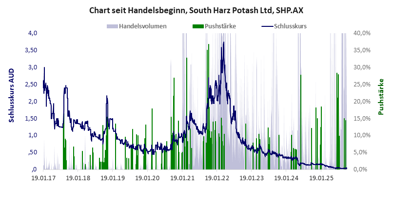 wertloses Unternehmen mit Aktienkurspushes in einem bekannten Netzwerk. South Harz hat ein sehr schlechtes Gesamtscoring und ist ein mickriger Pennystock mit praktisch einem Totalverlust. Das Gesamtvermögen ist karg, harte Vermögenswerte scheinen nicht werthaltig zu sein, der Umsatz ist nicht existent, die Ertragslage extrem verlustreich, das Defizit extrem hoch.