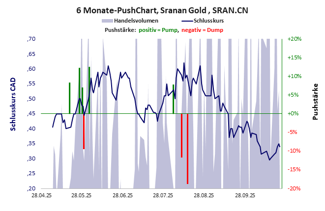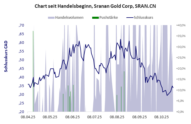 Sranan Gold hat ein inakzeptables Gesamtscoring und ist eine teure Aktie mit einem erträglichen Kursverlust. Das Gesamtvermögen ist nahezu null, harte Vermögenswerte scheinen nicht vorhanden zu sein, der Umsatz ist nicht existent, die Ertragslage extrem verlustreich, das Defizit extrem hoch.