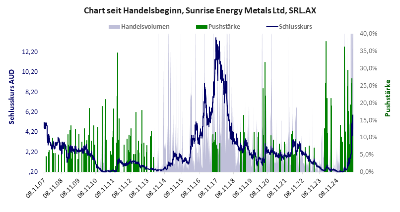 Sunrise Energy hat ein kritisches Gesamtscoring und ist eine billige Aktie mit einem starken Kursverlust. Das Gesamtvermögen ist überschaubar, harte Vermögenswerte scheinen nicht werthaltig zu sein, der Umsatz ist nicht existent, die Ertragslage extrem verlustreich, das Defizit extrem hoch.