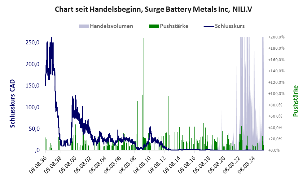 ein ziemlich wertloses Unternehmen mit gepushtem Kurs in großem Netzwerk und laufender Werbung. Bei dieser Aktie liegt das „Inkassomodell“ vor, bei dem der Aktienkurs zu Beginn der Geschichte sein Allzeithoch hat. Die Akteure verkaufen schon zu Beginn nach und nach ihre billigst erworbenen Aktien, so dass der Kurs in verhältnismäßig kurzer Zeit abstürzt. Danach dümpelt der Aktienkurs in den meistn Fällen nahe null dahin und die Aktie dient nur noch kleineren, dennoch gewinnbringenden Pushmanövern und in vielen Fällen dem Algotrading. Dem ersten Einbruch nachfolgende größere Pushmanöver sind aber nicht ausgeschlossen.