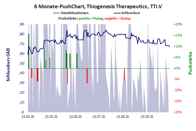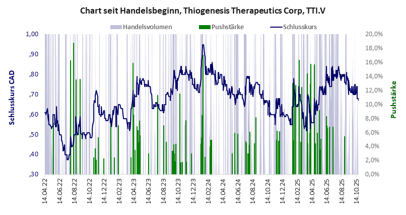 Thiogenesis Therapeutics hat ein mäßiges Gesamtscoring und ist ein Pennystock mit Kursgewinn. Das Gesamtvermögen ist karg, harte Vermögenswerte scheinen nicht vorhanden zu sein, der Umsatz ist nicht existent, die Ertragslage extrem verlustreich, das Defizit extrem hoch.