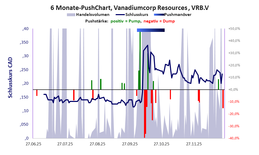Bei dieser Aktie liegt das „Inkassomodell“ vor, bei dem der Aktienkurs zu Beginn der Geschichte sein Allzeithoch hat. Die Akteure verkaufen schon zu Beginn nach und nach ihre billigst erworbenen Aktien, so dass der Kurs in verhältnismäßig kurzer Zeit abstürzt. Danach dümpelt der Aktienkurs in den meistn Fällen nahe null dahin und die Aktie dient nur noch kleineren, dennoch gewinnbringenden Pushmanövern und in vielen Fällen dem Algotrading. Dem ersten Einbruch nachfolgende größere Pushmanöver sind aber nicht ausgeschlossen. Bei dieser Aktie vollzogen die Akteure mindestens einen Pump & Dump und leerten damit ganz gezielt die Taschen der Anleger. Obwohl das Vorgehen rechtswidrig ist, erfolgt kaum je eine Strafverfolgung.