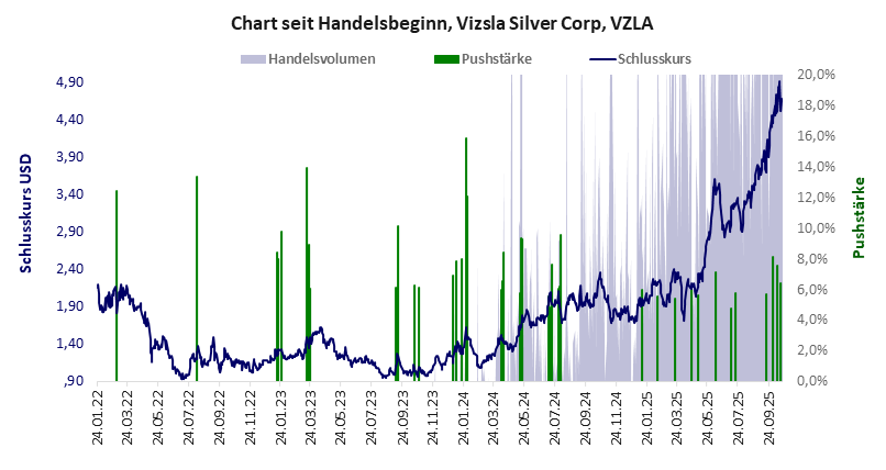 eine lange Geschichte soll 2027 gut und das erste Silber gewonnen werden. Derzeit ruht die gepushte Aktie noch auf dem Fundament der Hoffnung. Vizsla Silver hat ein mäßiges Gesamtscoring und ist eine billige Aktie mit Kursgewinn. Das Gesamtvermögen ist groß, harte Vermögenswerte scheinen werthaltig zu sein, der Umsatz ist nicht existent, die Ertragslage extrem verlustreich, das Defizit gering.