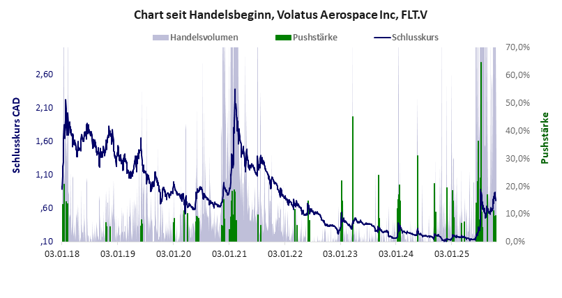 Volatus Aerospace hat ein schwaches Gesamtscoring und ist ein Pennystock mit einem starken Kursverlust. Das Gesamtvermögen ist beträchtlich, harte Vermögenswerte scheinen wenig werthaltig zu sein, der Umsatz ist beträchtlich, die Ertragslage sehr verlustreich, das Defizit erträglich.