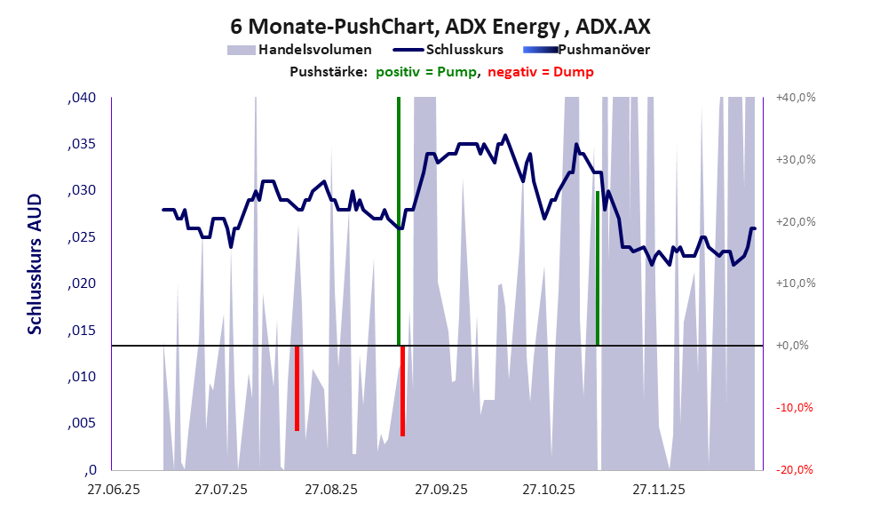 ADX Energy war in der Öl- und Gasexploration wenig erfolgreich. ADX übernahm von der OMV aufgelassene Felder in Nieder- und Oberösterreich und beutet diese ohne wirtschaftlichen Erfolg aus. Mit der groß angekündigten Bohrung Welchau 1 sollte eine neue Gaslagerstätte in OÖ aufgeschlossen werden. Als die Absicht über die Erdgasbohrung Welchau 1 öffentlich bekannt wurde, gab es große Aufregung in und Widerstand der Bevölkerung, weil die Bohrung nahe einem Naturschutzgebiet liegt. Um die Bohrkosten zu finanzieren, schloss ADX einen Farm-in-Vertrag mit der Kepis & Pope Financial Group (KPFG) ab. Für die Finanzierung von 50% der Bohrkosten erhielt KPFG eine 20%-ige Beteiligung an der Lagerstättenausbeute. Ford Nicholson, Präsident von KPFG, reichte den Vertrag an die MCF Energy weiter, die im Zusammenhang mit diesem Deal Mitte 2022 den Handel an der TSXV aufnahm. Ford Nicholson legte 400.000, Frank Giustra (CEO der Fiore Group), Mario Vetro und Carson Seabolt (beide bei Skanderberg Capital involviert) je eine Million und Thomas Humphreys eine halbe Million Dollar bei MCF an. Über 42% von MCF waren im Besitz von Insidern, von denen viele zur Fiore Group gehörten oder mit ihr verbunden waren. Sie alle wurden mit dem Pushmanöver, das im Januar 2023 den Kurs um fast 400% nach oben trieb, erheblich reicher. Die Bohrung Welchau 1 wurde gegen den Widerstand der Bevölkerung im Herbst 2023 niedergebracht und fündig. Die Ergebnisse waren Anlass für zwei weitere, deutlich kleinere Pushmanöver am Aktienkurs der MCF, aber der Kurs sank insgesamt ständig weiter ab und brach im November 2024 regelrecht ein, weil Fördertests einen hohen Wasseranteil und nur geringe Mengen Öl ergaben. Im Januar 2025 billigte der VGH zudem Beschwerden gegen die naturschutzrechtlichen Bewilligungen für die Bohr- und Testarbeiten und verwies die Causa mit aufschiebender Wirkung an die Landesbehörde von OÖ. Diese hob den Stopp im Oktober 2024 auf, so dass die Geschichte 2026 weitergehen wird. Mit Erfolg? Höchst ungewiss. Gewiss aber mit viel Publicity.