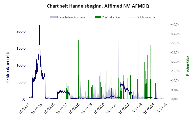 Affimed hat am 13.05.2025 den Insolvenz-Antrag beim Gericht in Mannheim eingereicht. Es gibt keine Prognosen, ob das Unternehmen, das stark überschuldet ist, weitergeführt werden kann. Die Delistings an der Nasdaq und an der FWB und der Wechsel zum OTC-Markt zeigen, dass die Firma wohl aufgelöst werden wird. Es wird als unwahrscheinlich angesehen, Käufer zu finden. Affimed scheiterte, weil die Projekte AFM13 (gegen Lymphome) und AFM24 (gegen nicht-kleinzelliges Lungenkarzinom) nicht wie geplant weiterentwickelt werden konnten. Affimed meldete allerdings positive Ergebnisse für das Produkt AFM24. Daran könnten Investoren Interesse haben. Darüber hinaus wird es als unwahrscheinlich angesehen, Käufer für Affimed zu finden. Affimed NV hat ein schlechtes Gesamtscoring und ist ein mickriger Pennystock mit praktisch einem Totalverlust. Das Gesamtvermögen ist beträchtlich, die Vermögenswerte scheinen wenig werthaltig zu sein, der Umsatz ist überschaubar, die Ertragslage extrem verlustreich, die Geldverbrennung extrem hoch.