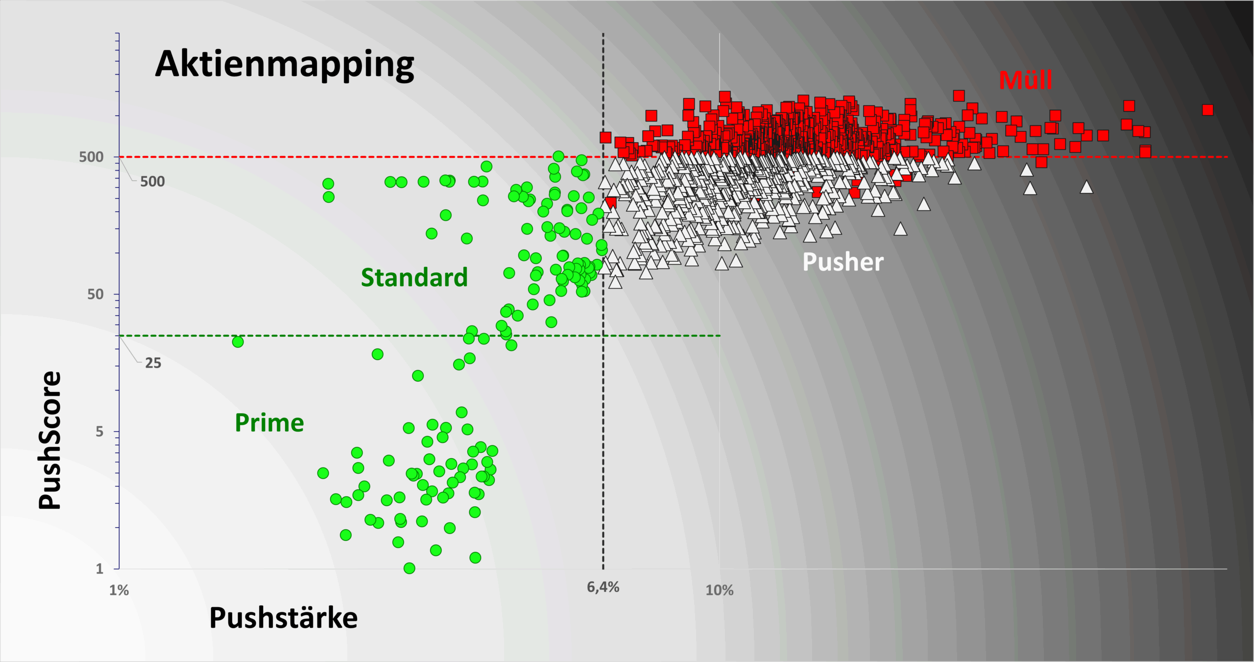 Getrennt werden Standard- und Pusheraktien durch das Maß der Pushstärke von 6,4 Prozent.